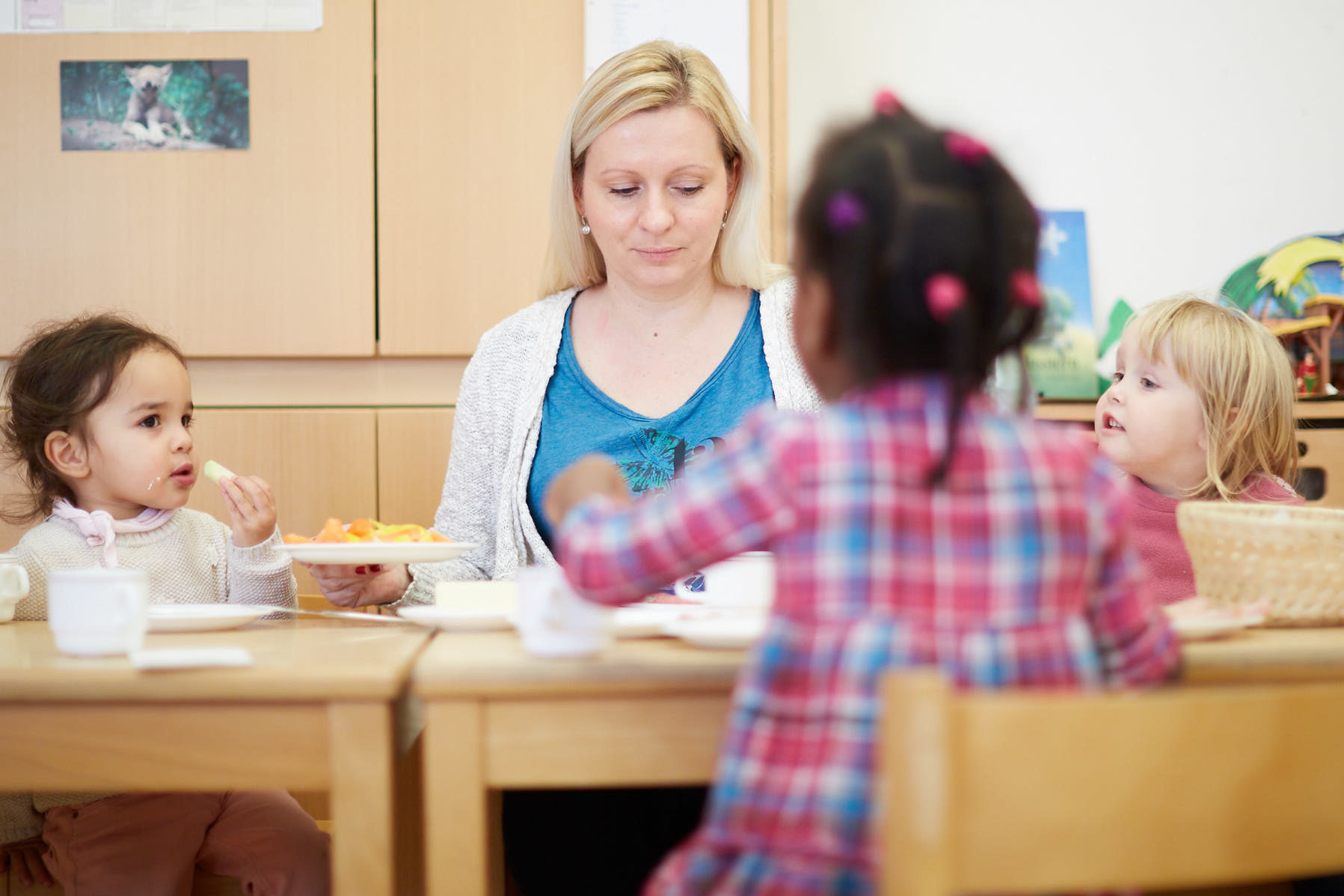 Außerdem empfiehlt Anni Söntgerath, dass diese Kontaktperson schon das vorbereitende Elterngespräch übernimmt. So kann sie von Anfang an eine vertrauensvolle Beziehung auch zu den Eltern herstellen. Und das zahle sich aus: „Sind die Eltern entspannt bei der Eingewöhnung, überträgt sich das in der Regel auch auf das Kind. Denn das orientiert sich ja am Verhalten seiner Bezugspersonen.“