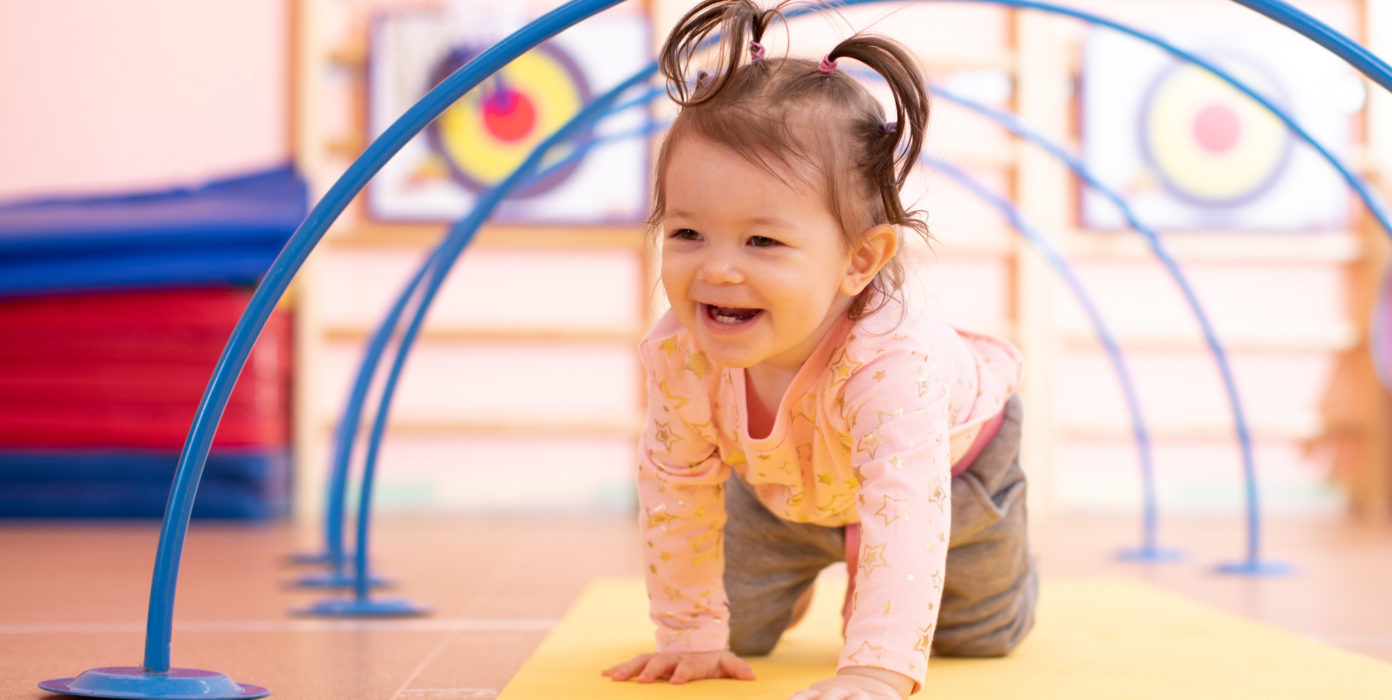 Kriechen, Krabbeln, Klettern, Gehen, Laufen, Rutschen oder Hangeln – damit sich U3-Kinder entfalten können, brauchen sie vor allem eines: Platz. Der Raum muss dafür groß genug und sinnvoll gestaltet sein. Das ist dann der Fall, wenn die Kinder Lust und Gelegenheit haben, sich selbstständig „auszutoben“ und ihre Erfahrungen an oder mithilfe von Geräten zu sammeln. Die Fachkräfte haben darüber hinaus die Aufgabe, motorische Entwicklungen gezielt zu fördern, zum Beispiel mit Ball- und Fangspielen, aber auch mit Tanz und Turnübungen.