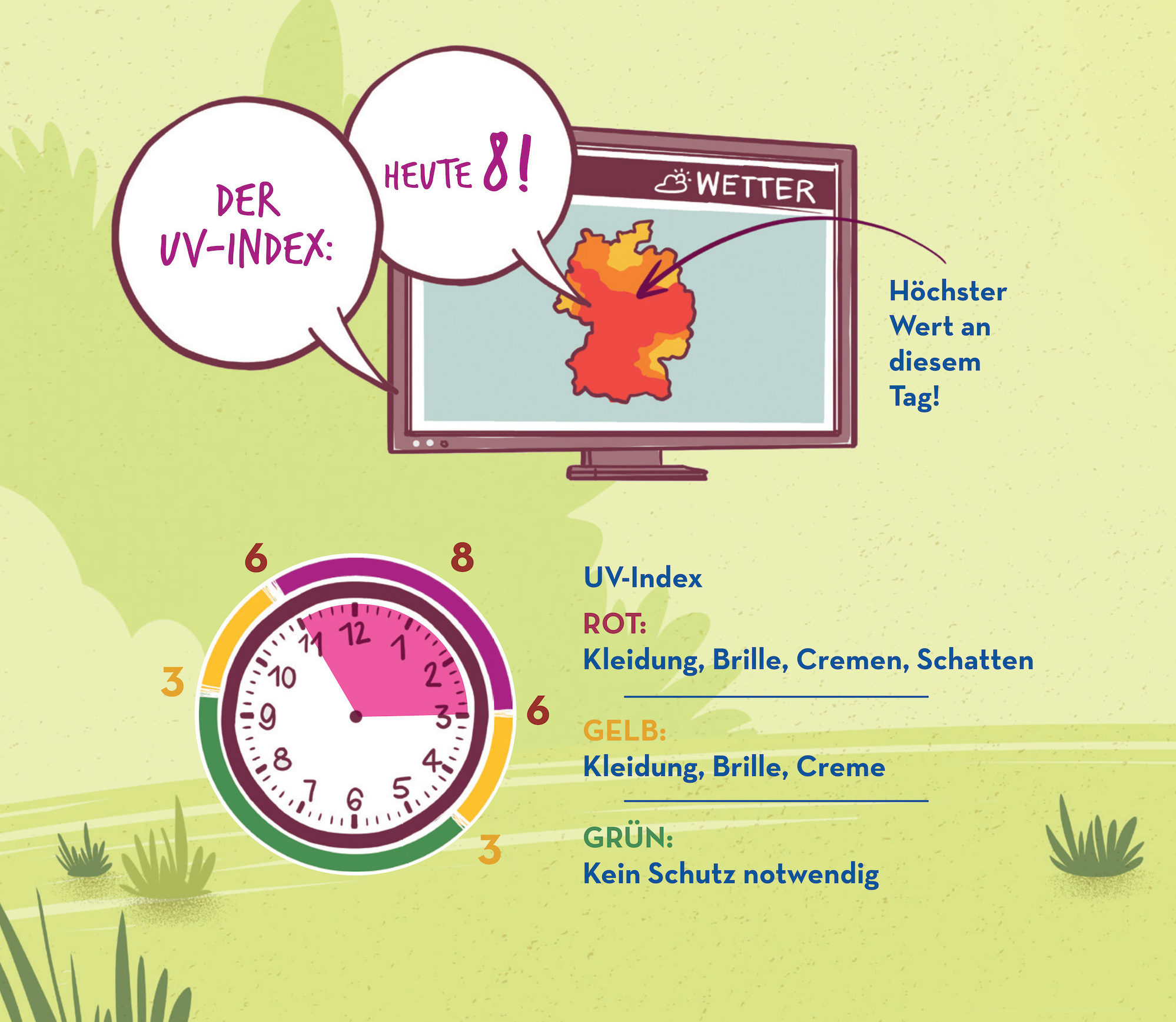 - UV-Index beachten. Denn: Je höher der UV-Index, desto größer die Sonnenbrand-Gefahr. Infos unter: www.bfs.de