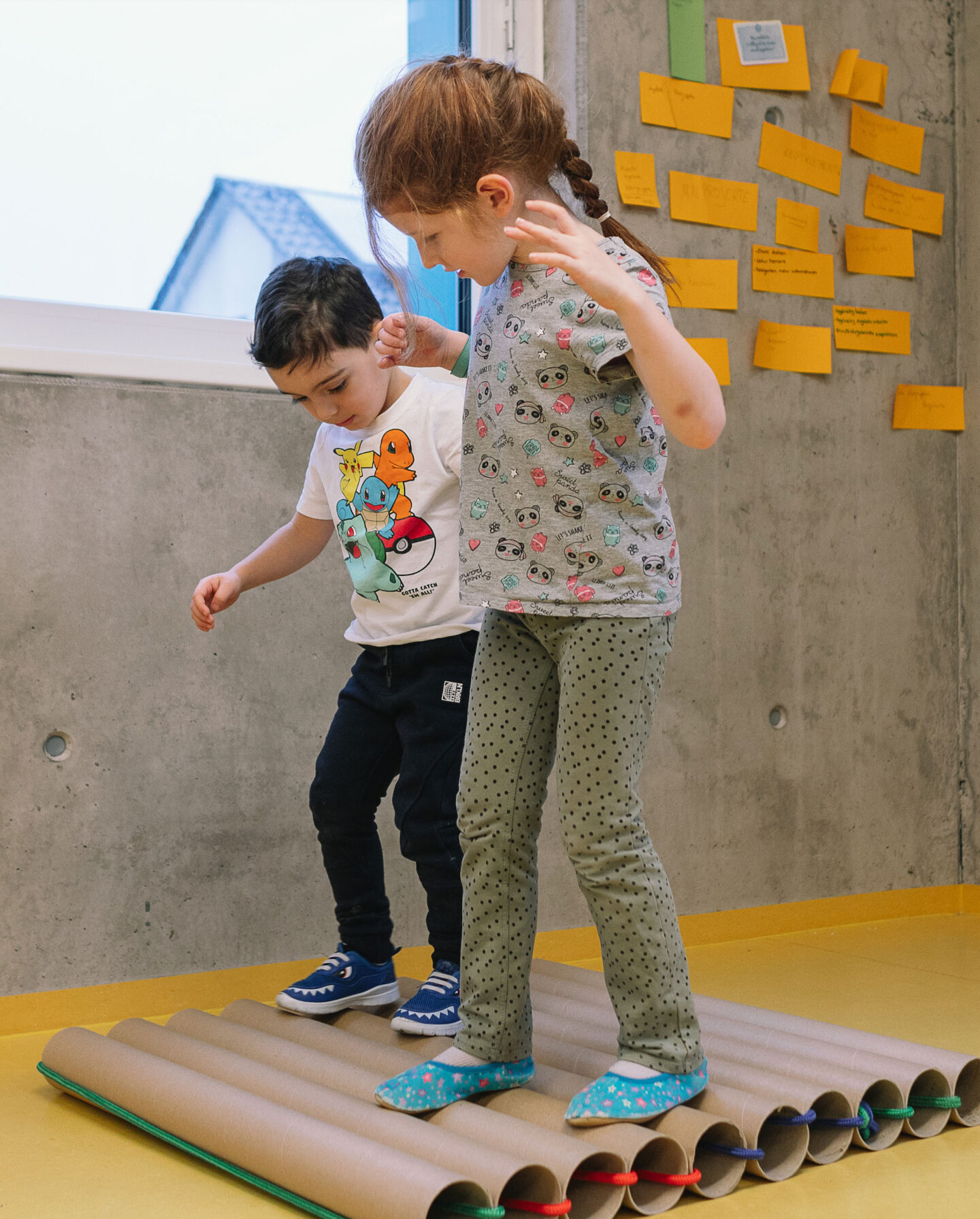Das bewegt sich aber ganz ordentlich! Für Alessio und Ronja sind die Rollen eine wackelige Angelegenheit.