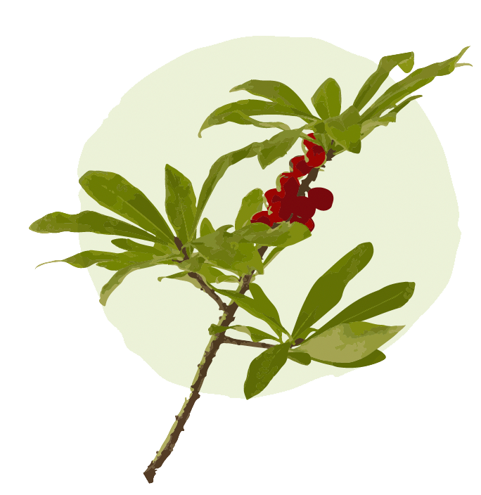 wird bis zu 1,5 Meter groß. Aus pinken Blüten entwickeln sich erbsengroße, eiförmige rote Früchte. Alle Pflanzenteile, mit Ausnahme des