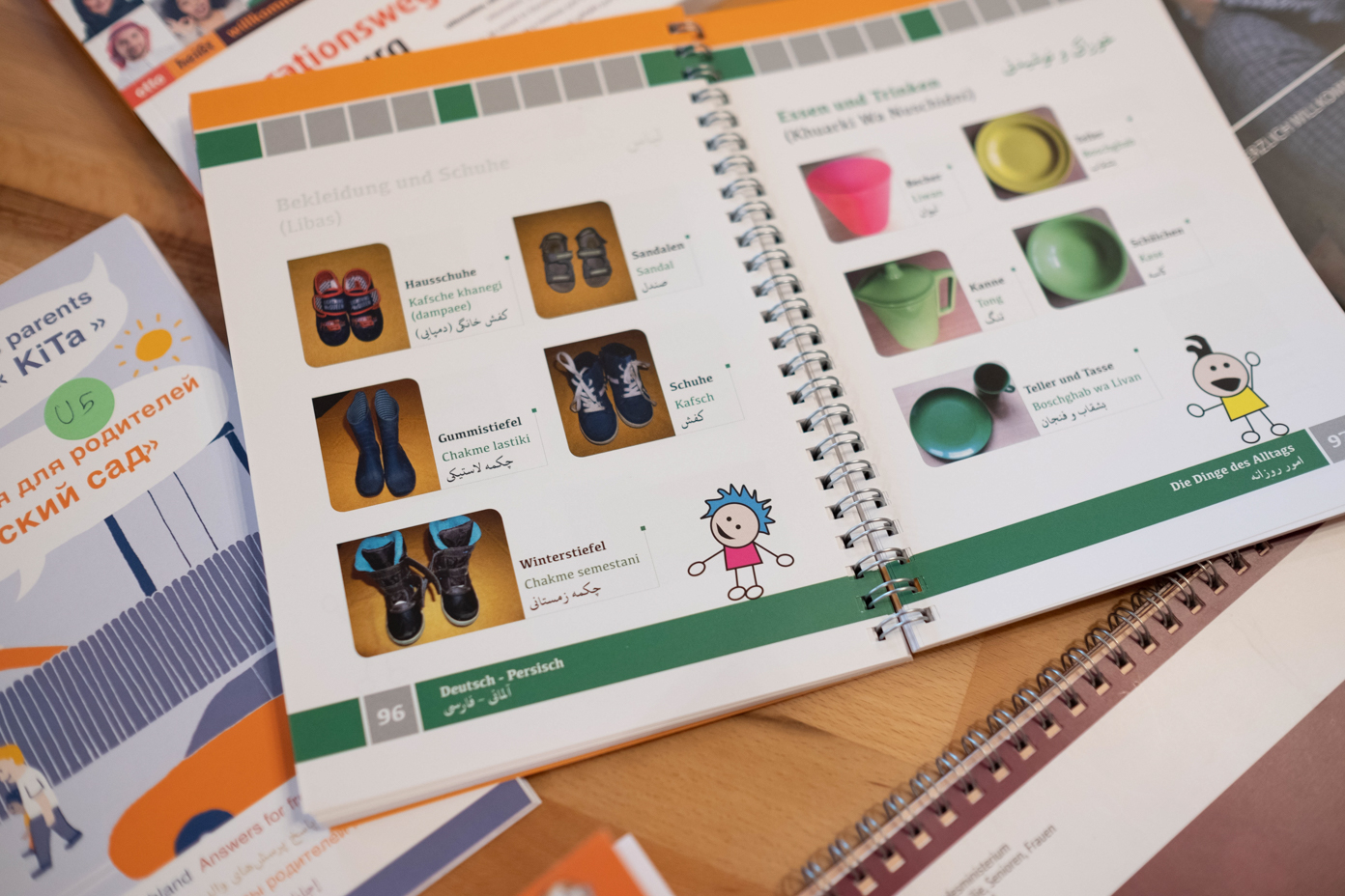 Gleichwohl: Um eine Erziehungspartnerschaft aufzubauen, reichen derlei Gesten nicht aus. „Wir haben gutes Material“, sagt Renhak, die über das Bundesprogramm „Sprach-Kitas“ als Fachkraft für Sprache und Integration im Weltkinderhaus arbeitet. Die Broschüren und Checklisten nutzen Piktogramme und Bilder, etwa um den Eltern zu veranschaulichen: Was sind eigentlich diese Matschklamotten oder diese Gummistiefel, die unsere Kinder benötigen?