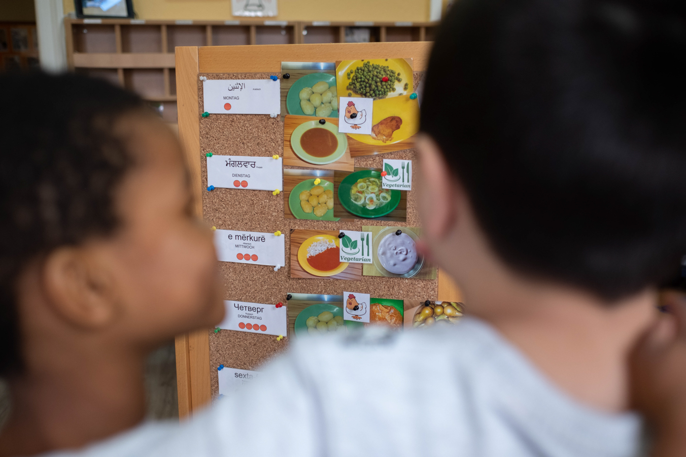 Der Speiseplan der Woche hängt gar nicht erst in Schriftform aus. Jedes Gericht ist mit einem Foto abgebildet. Zudem signalisieren kleine Symbolbilder, ob das jeweilige Essen Schwein, Huhn, Rind oder Milch enthält, um den religiösen und kulturellen Gepflogenheiten Rechnung zu tragen. „Wir wollen, dass wir als Einrichtung mit unserer Einstellung und Vielfalt akzeptiert werden“, sagt Sebastian Schmidt. „Da müssen wir auch genauso die andere Seite akzeptieren und nicht auf dem Schweineschnitzel beharren. So kann ein respektvolles Miteinander wachsen.“